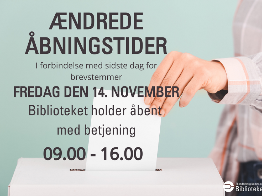 I forbindelse med sidste dag for brevstemmeafgivning, holder bibliotekerne åbent for betjening fra kl. 9-16