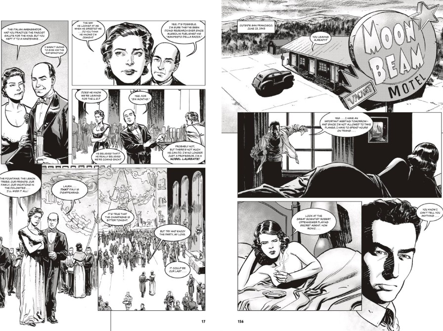 Det er et massivt værk på knap 500 sider, og som læser skal du investere din opmærksomhed. Både fordi illustrationerne indbyder til opdagelse, men især fordi historien er kompleks og bliver fortalt fra flere vinkler. Historien tager udgangspunkt i det amerikansk-ledede atomvåben-program, som gennemføres under tophemmelige omstændigheder i Los Alamos i kapløb med russerne, men naturligvis også i kapløb med det nazistiske Tyskland. Fortællingen rummer mange historiske facetter - vi kommer forbi tungtvandsfabrikken i Norge og ind i statskontorerne i Moskva, London, Berlin og Washington.