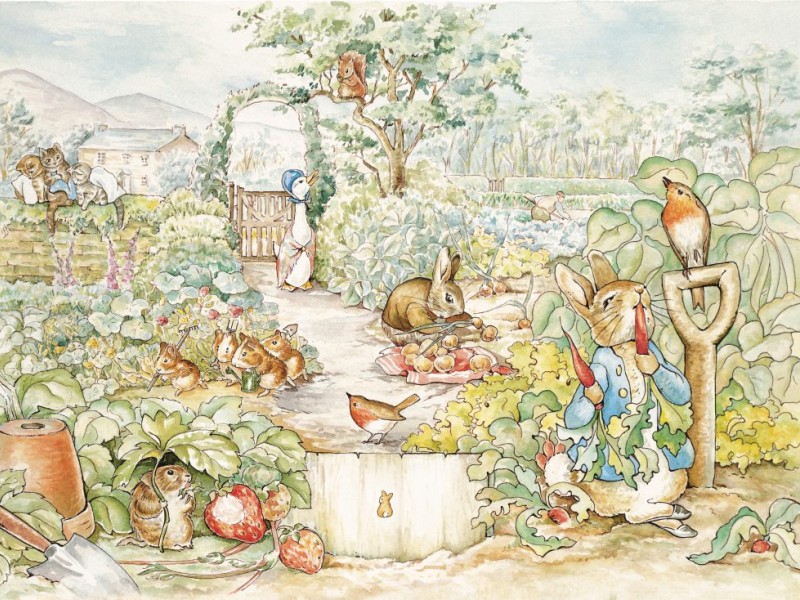 Bag indhegningen til Hr. Suhrs køkkenhave ligger det forjættede land. Der vokser gulerødder, tomater og alverdens andre lækkerier som en lille kanin kan begære.
