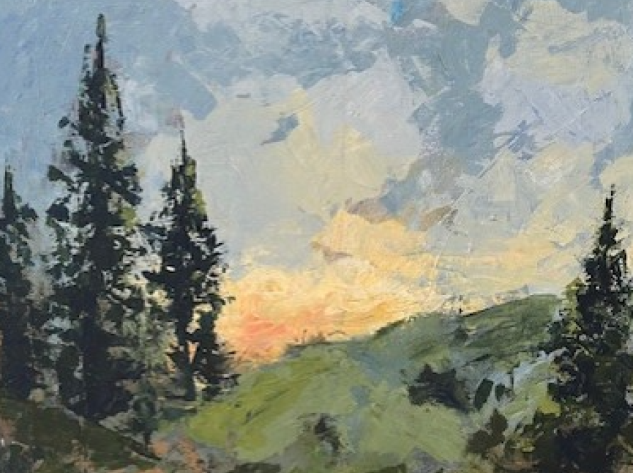 Ry BibliotekLette akvareller med skildring af naturen omkring Ry eller livet på landet. Betagende skildringer af himmel og vand. Brede spartelstrøg i akrylmaling, der giver liv til en formgivning i balance.
