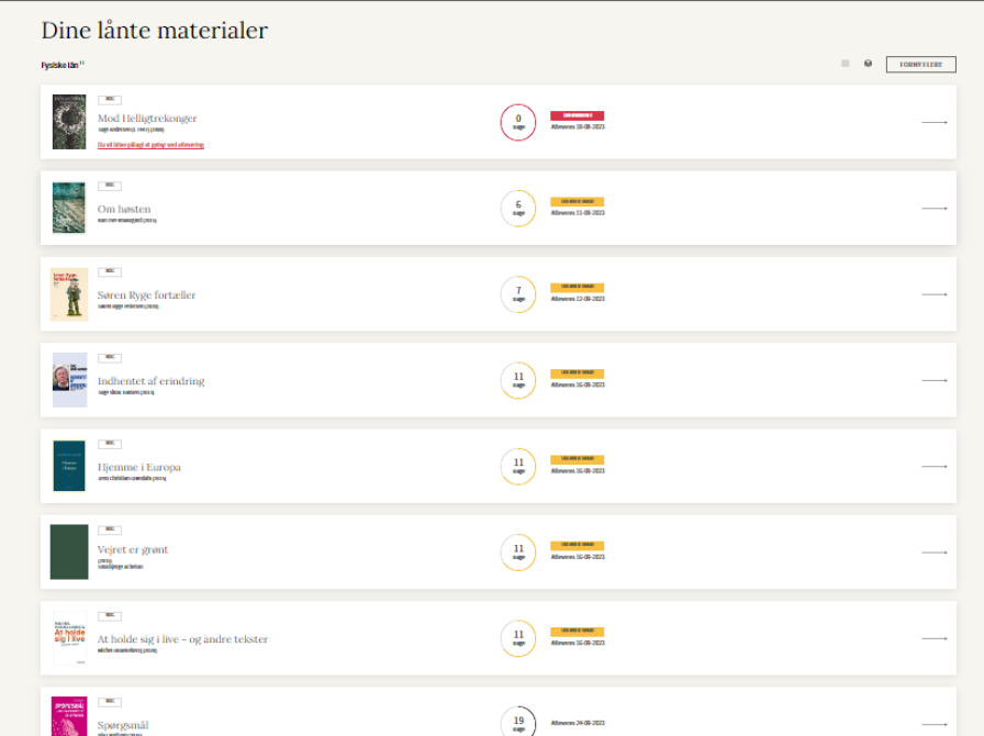Her vises ”Overskredne lån”, ”Lån” og som noget nyt også dine ”Digitale lån”, så du har et samlet overblik.